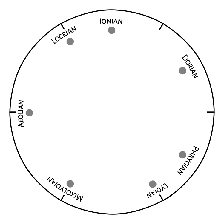 The Music Clock provides an easy and visual way to describe the relationship between musical notes, in the same way colour relationships can be described on a colour wheel. Turn through the different scales and determine chords, scale formations, progressions and harmonies throughout the seven musical modes. Similar to colour, the note that forms the tritone, or most opposing note to another can be found as its direct opposite. Discover triads, complementaries and visualise how to augment, or suspend notes. See how colour and music collide to create your own musical palettes as described in Vision of Art.
